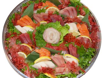 60 pieces of Salmon, Tuna, Yellowtail, Halibut, Albacoreand Escolar Sashimi